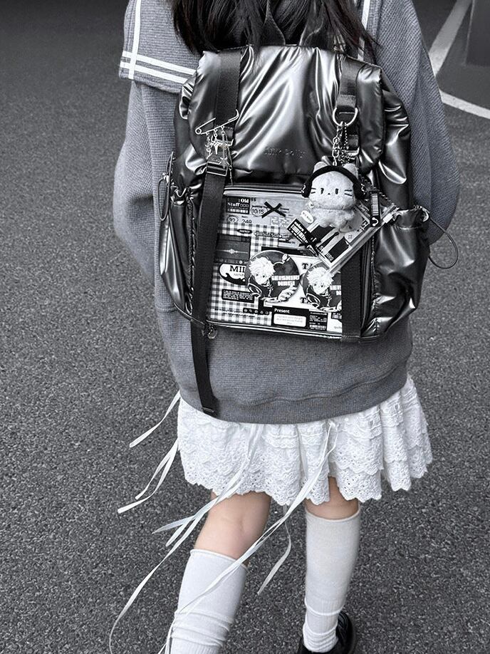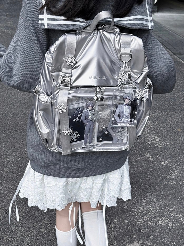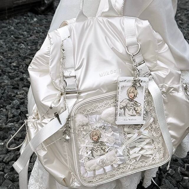 ✿レーザー痛バッグ グッズ収納リュック/透明ファッション lolita オシャレバッジ収納推し活カバンクリアバッジ収納