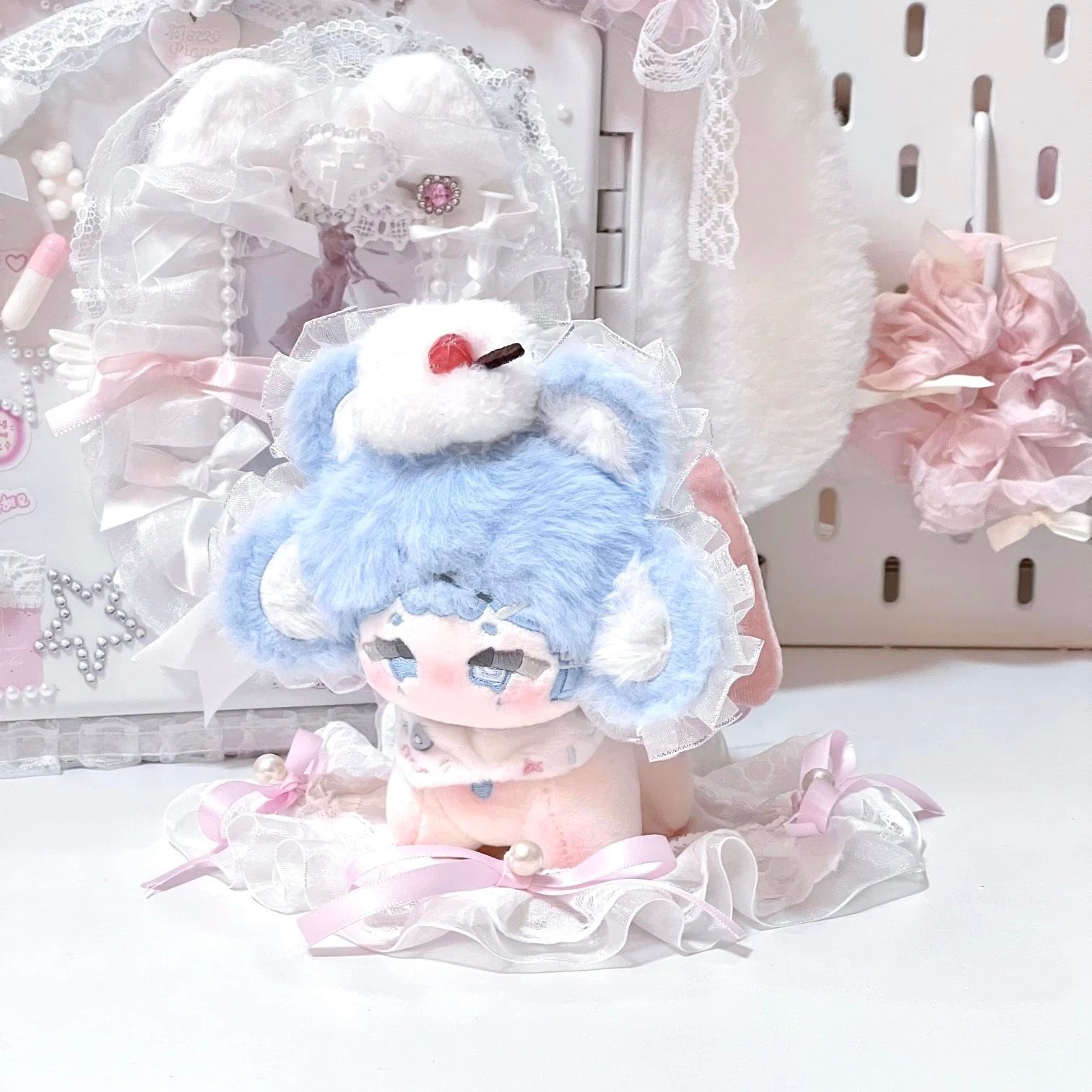 ✿10cm✿ 水色犬犬 子犬体 2点セット 無属性ぬいぐるみ着せ替え人形furry獣体(製作者@晔明竹)